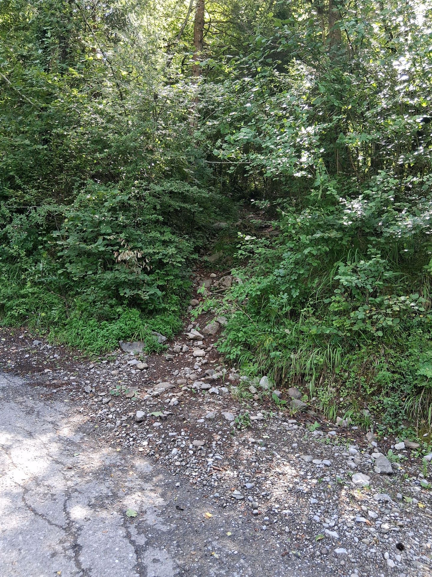 Der Rückweg beginnt ruhig, doch das Gewitter holt mich ein. Zum Glück bin ich da bereits vom Gipfelbereich unten und wieder vorbei an der Alm. Dennoch: Der Regen erwischt mich. Kräftig, kalt, durchdringend.