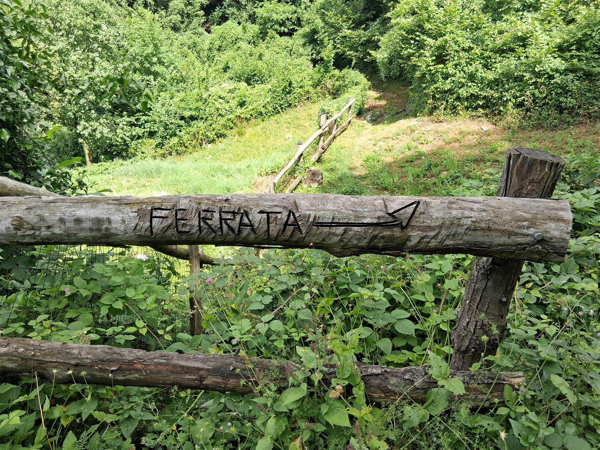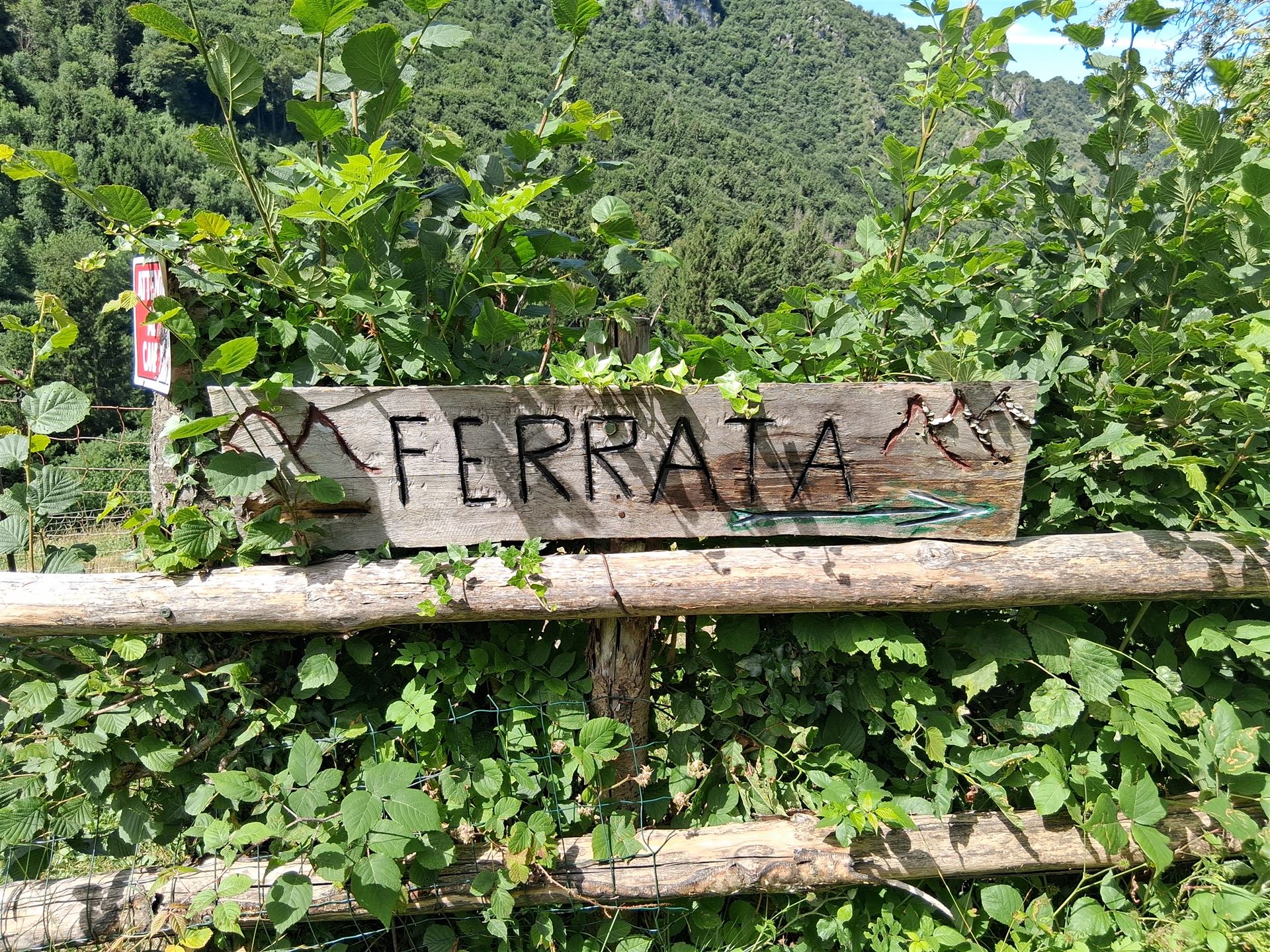 Der Weg führt in Richtung Splazza di Sopra Alm. Ich folge der klaren Beschilderung zur Ferrata, passiere die Alm oberhalb und merke: Jetzt ändert sich die Stimmung. Die Landschaft wird rauer, die Felsen näher, die Gedanken klarer.