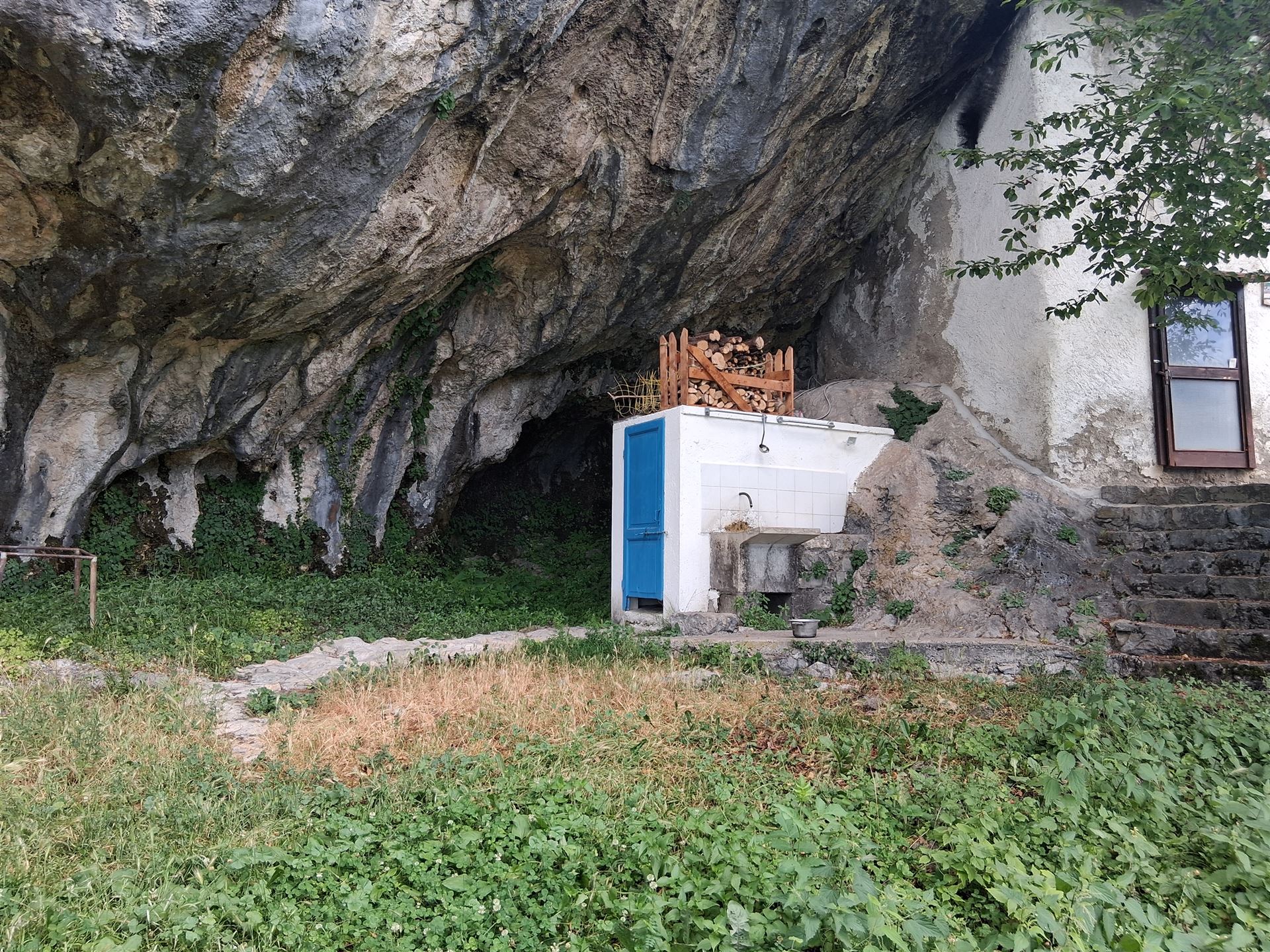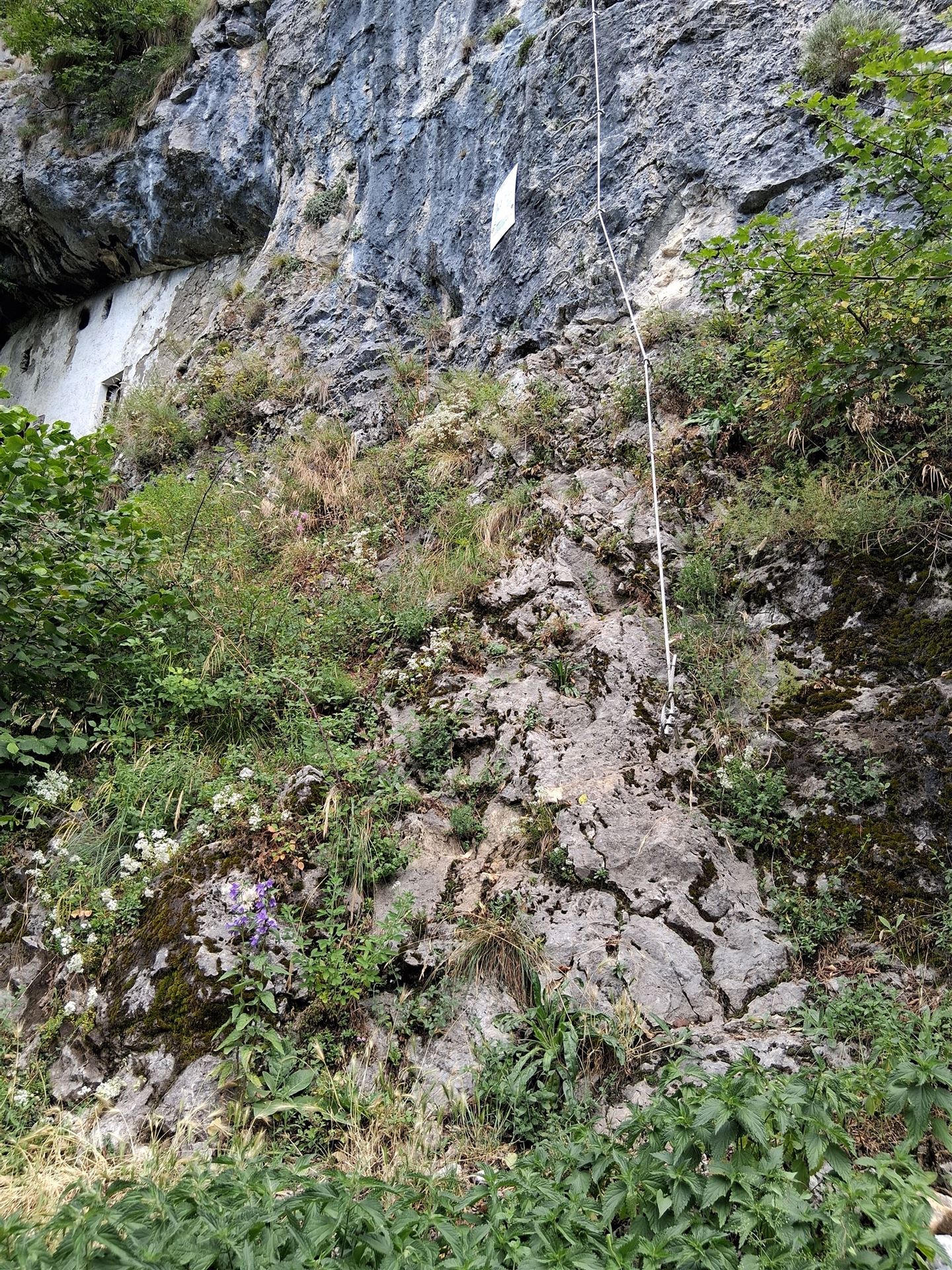 Der Einstieg ist nicht mehr weit – und dann sehe ich es: das Haus, direkt in den Fels gebaut. Genau dort beginnt das Abenteuer.schließlich ein Steig hinunter zur Lache ab. Spätestens hier wird klar: Jetzt wechselt die Tour vom Wandern zum Ernstmachen.