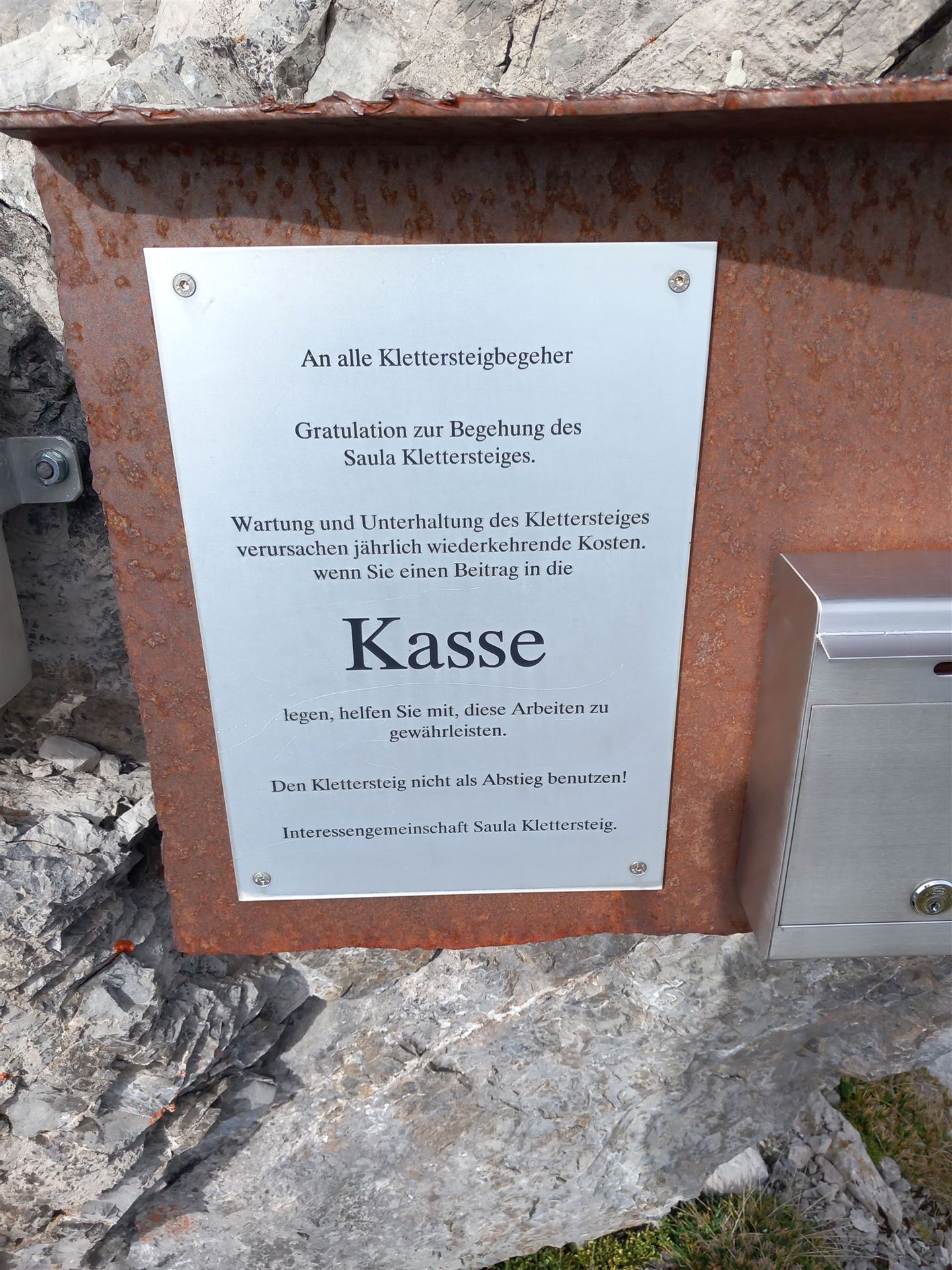 Am Einstieg des Klettersteigs am Saulakopf herrscht keine Hektik. Ich kontrolliere mein Material, hake mich ein, atme tief durch. Kein Stress. Kein Drängen.