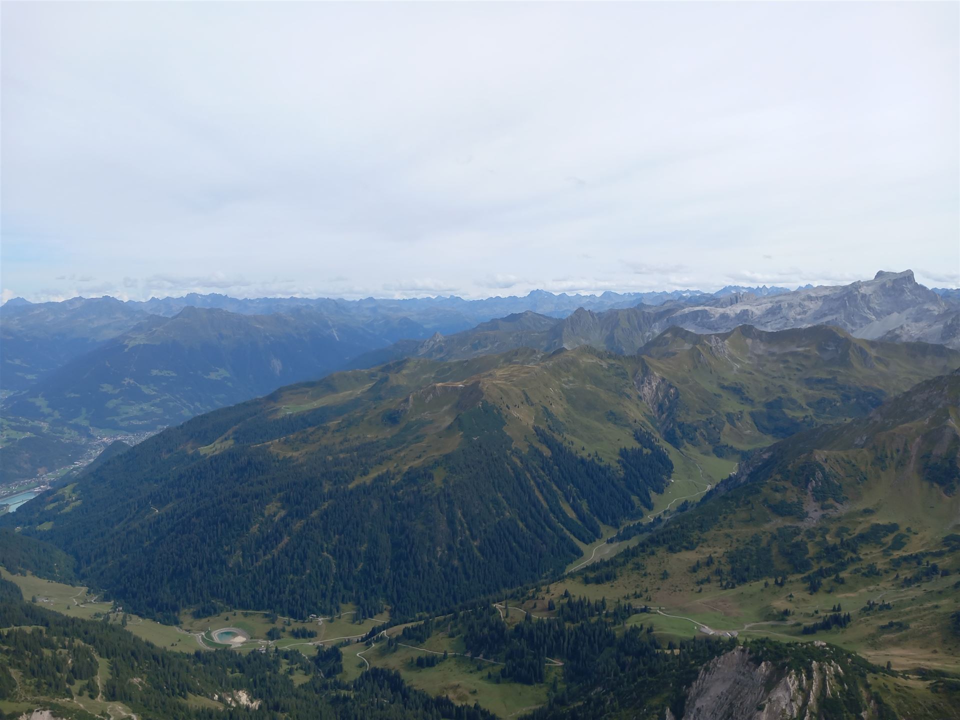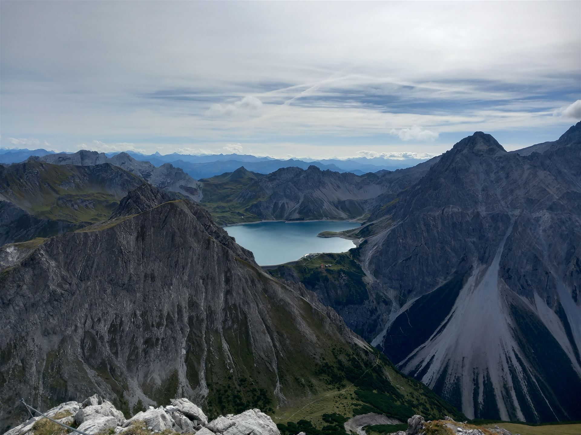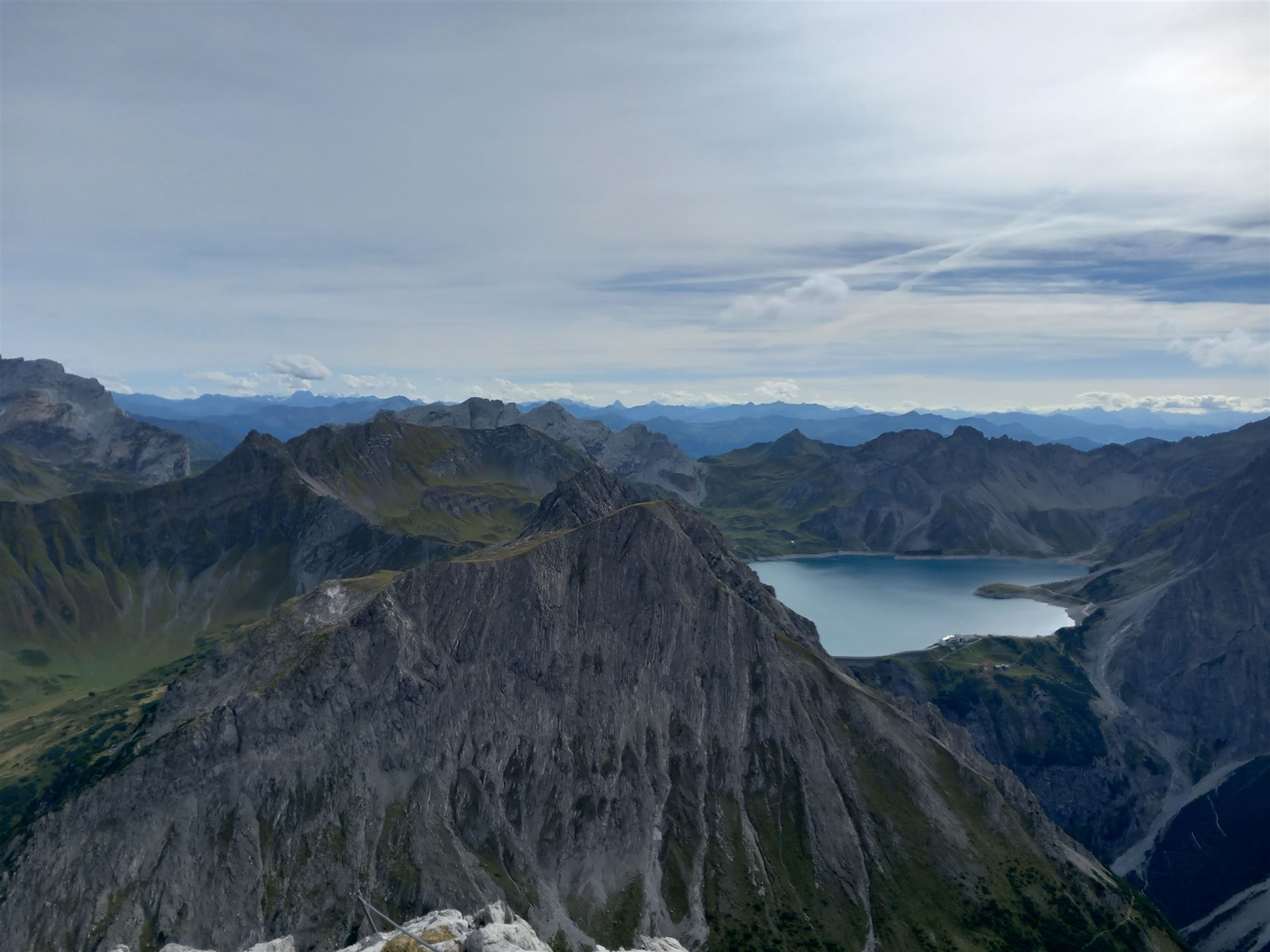 Der Gipfel ist still. Kein überlaufener Platz, kein Bedürfnis nach großen Gesten. Ich setze mich, lasse den Blick über das Montafon und das Brandnertal schweifen. Tief unten schimmert der Lünersee, ruhig eingebettet zwischen den steilen Flanken – fast unwirklich klar.