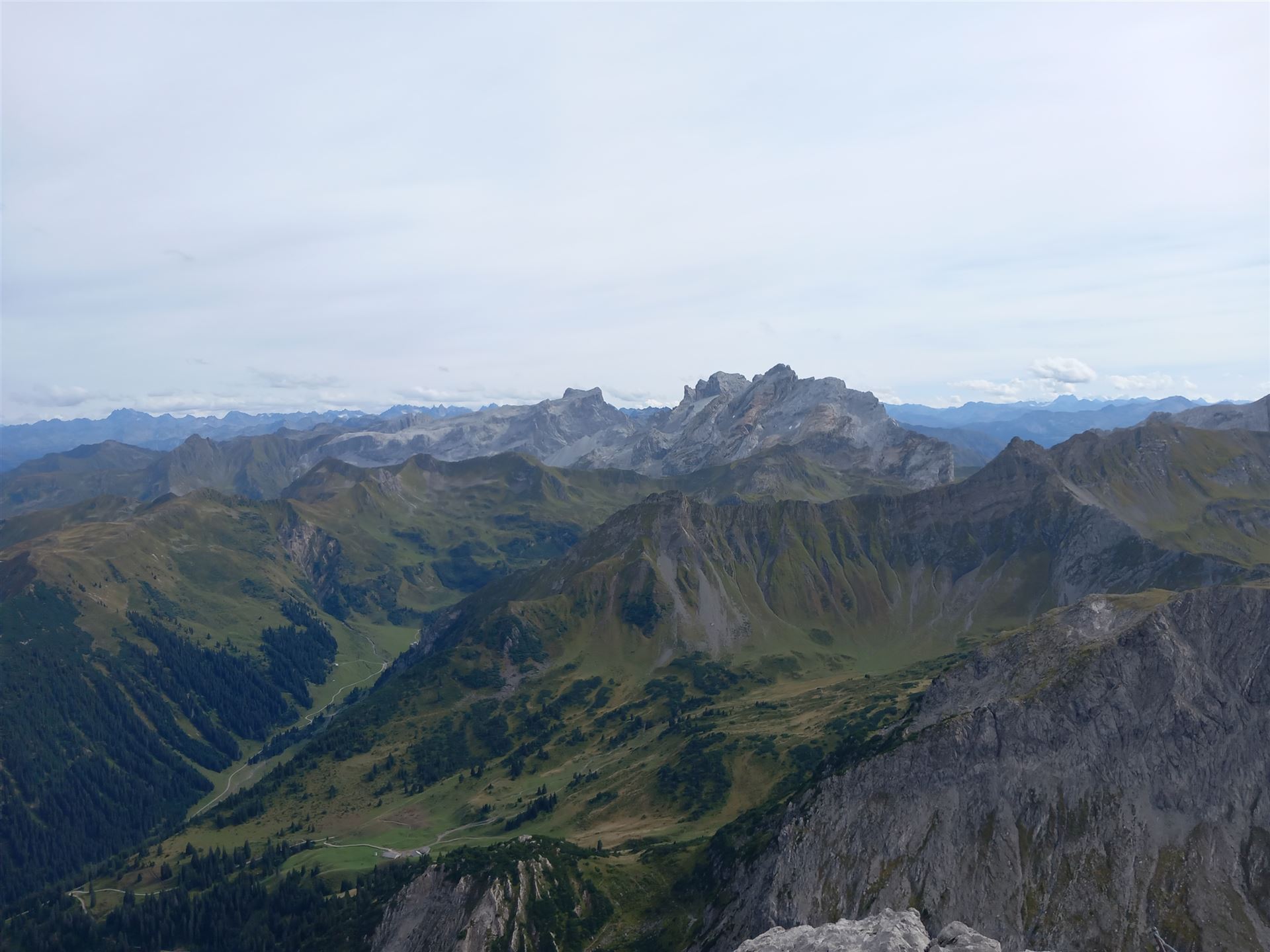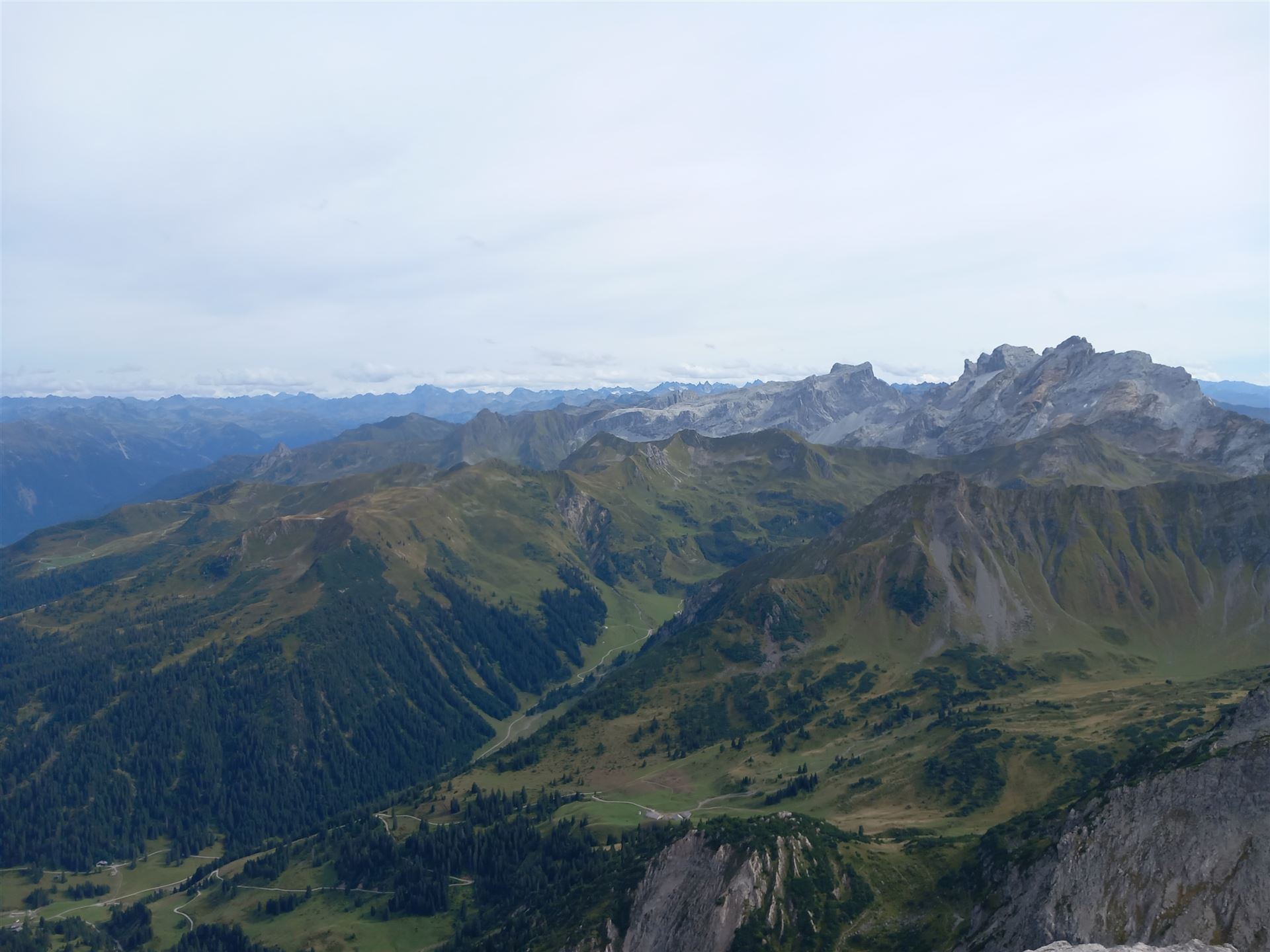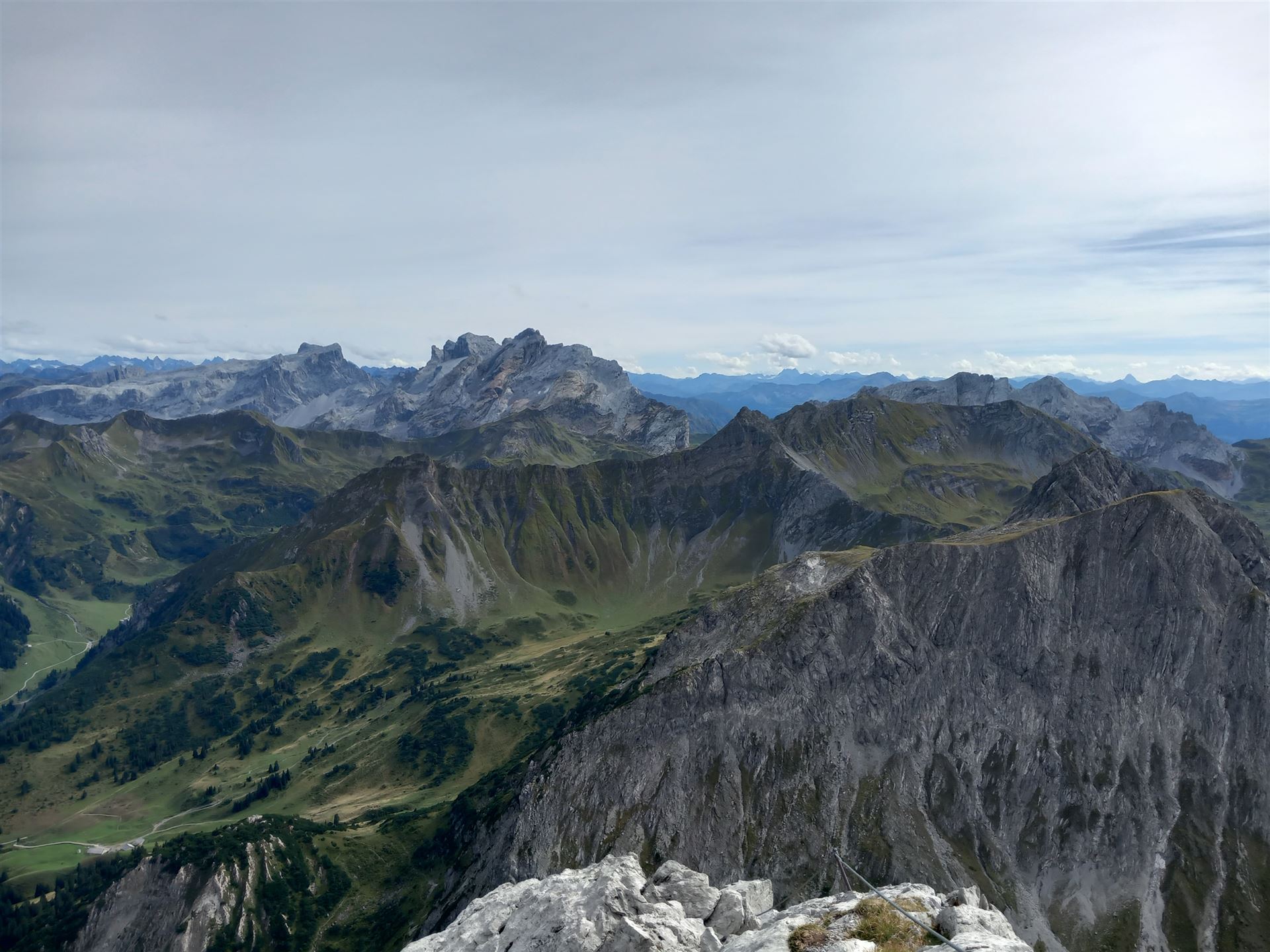 Der Gipfel ist still. Kein überlaufener Platz, kein Bedürfnis nach großen Gesten. Ich setze mich, lasse den Blick über das Montafon und das Brandnertal schweifen. Tief unten schimmert der Lünersee, ruhig eingebettet zwischen den steilen Flanken – fast unwirklich klar.