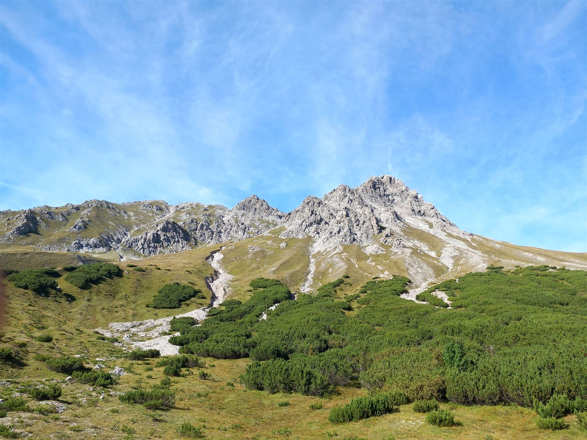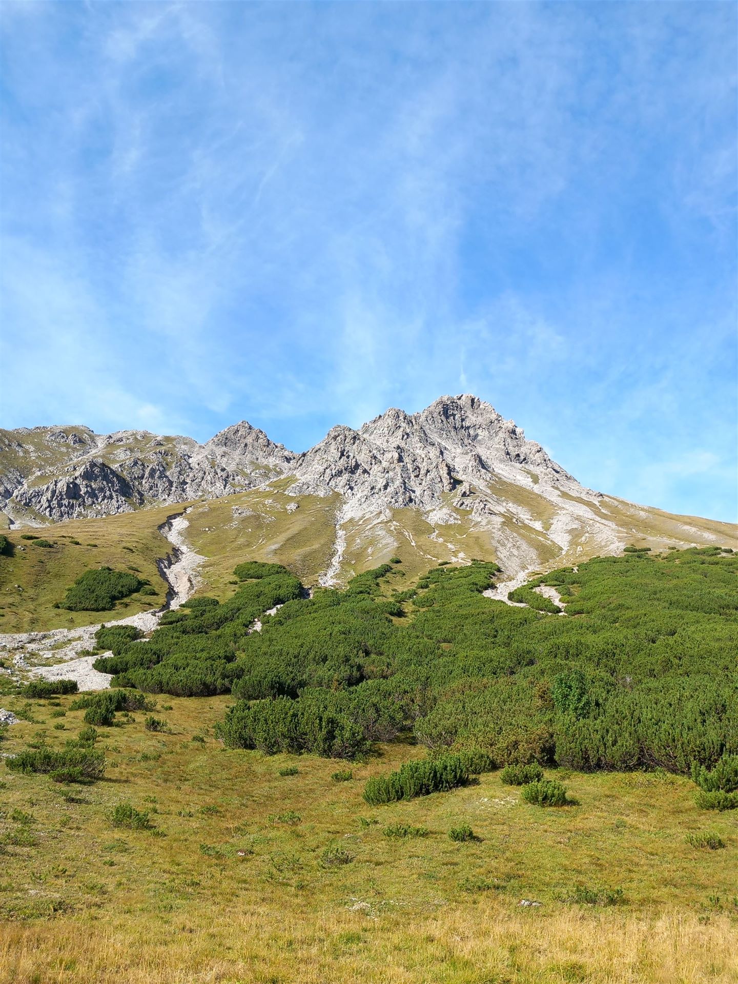 Ich folge dem Latschenfresserweg (T3). Schon der Name klingt nach Respekt. Der Weg ist schmal, stellenweise steil, technisch anspruchsvoller als man es von einem Zustieg vielleicht erwartet. Ich merke schnell: Hier beginnt die Tour nicht erst am Stahlseil.